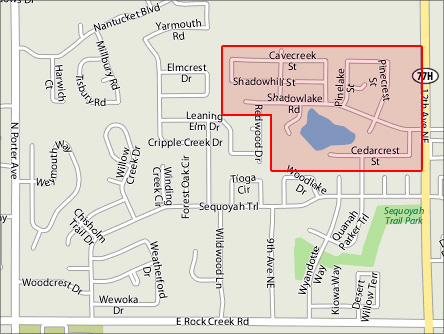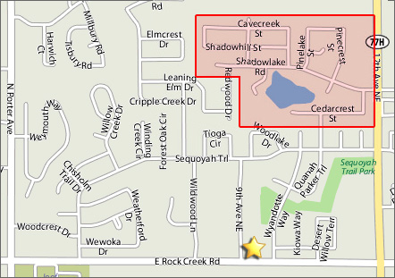| our LOCATIONShadowlake is located just west of Sooner Road and north of Rock Creek Road on the east side of Norman, Oklahoma.